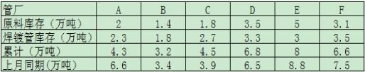 上面樣本管廠主要以華北地區為主,截至1月17日,天津唐山邯鄲主要管廠統計:廠內原料帶鋼庫存25.7萬噸,比上周減1.1萬噸;焊管庫存7.3萬噸,比上周降0.2萬噸;鍍鋅管庫存19萬噸,比上周增0.3萬噸;鋼管平均日成交量4.35萬噸,比上周降0.1萬噸。從數據來看,與上月同期相比大部分管廠庫存總量比上月同期有所減少,臨近春節放假,廠內庫存有限,銷售壓力并不大。另外各管廠生產部門普遍在臘月二十左右放假,正月初十左右上班,停工時間在15-20天,各個管廠預計影響產量在3-5萬噸。